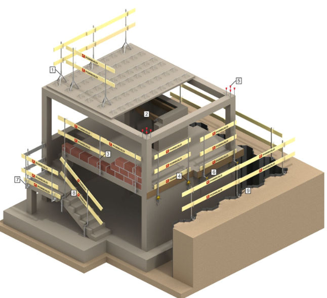 Mit wenigen und robusten Elementen können Sie unser Seitenschutzsystem bei sämtlichen